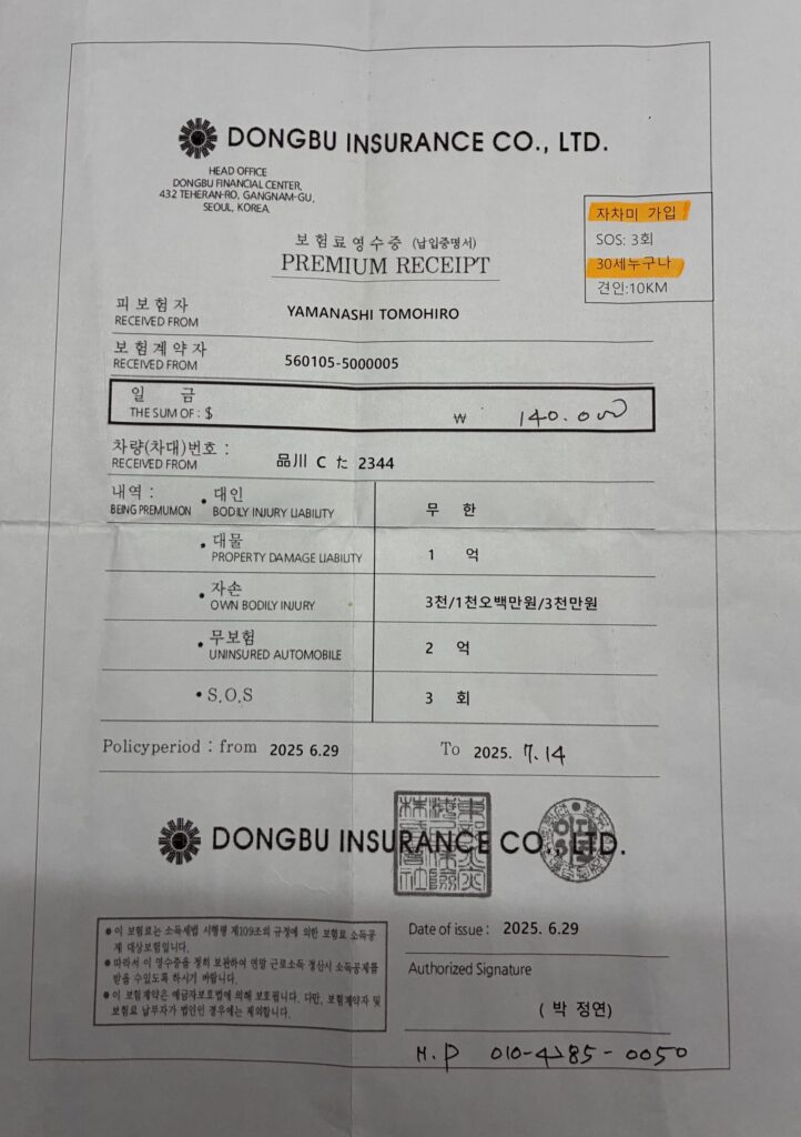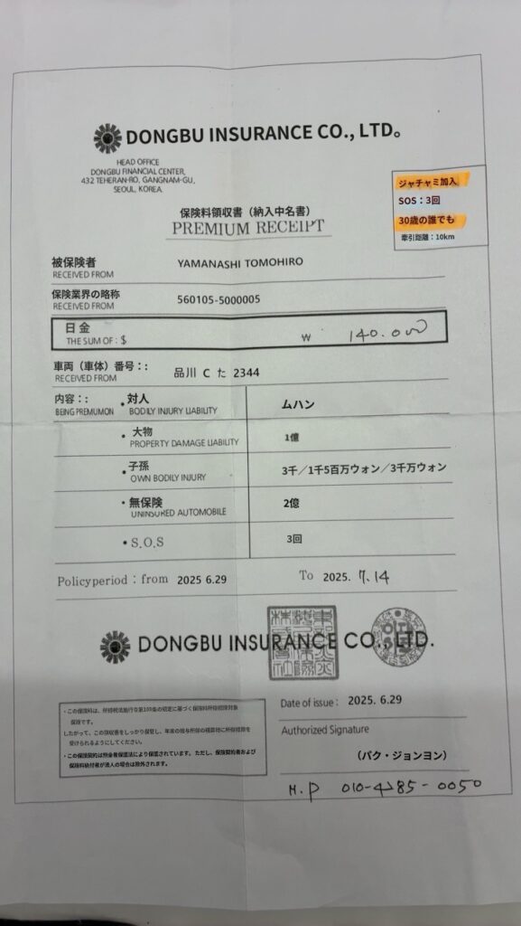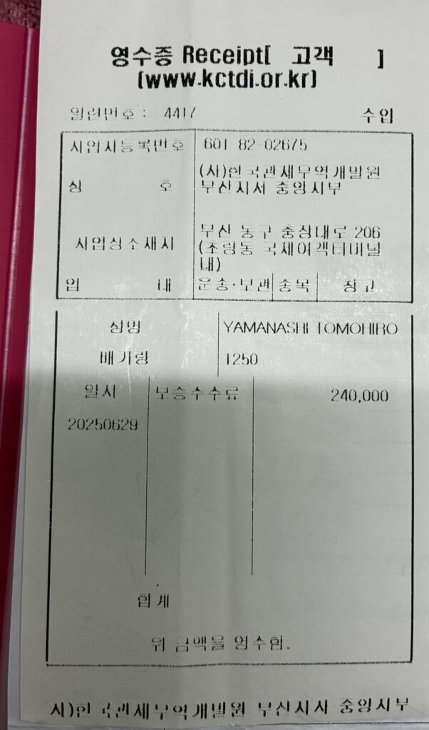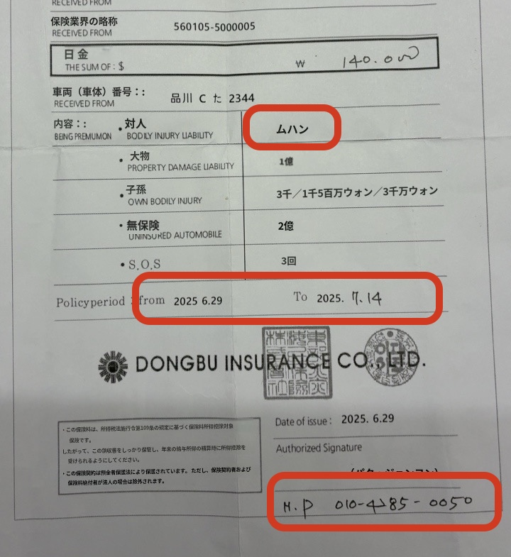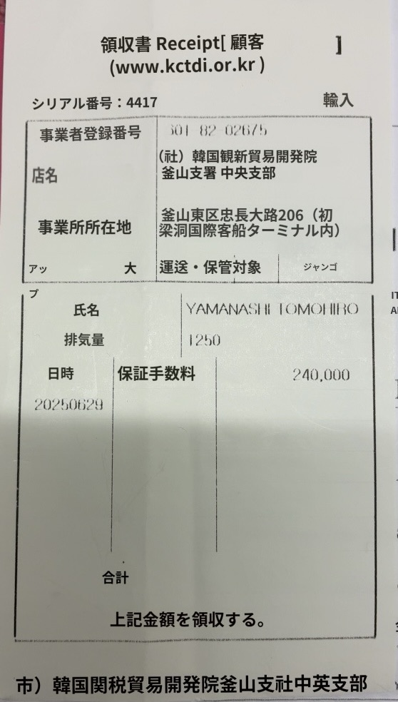 関税補償手数料と強制保険です。240000ウォンと140000ウォンです。