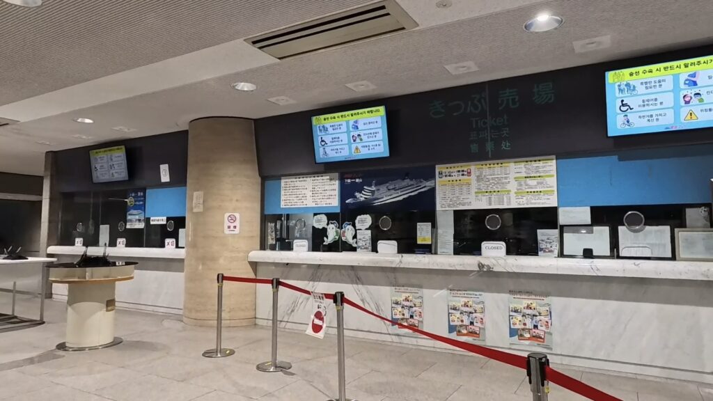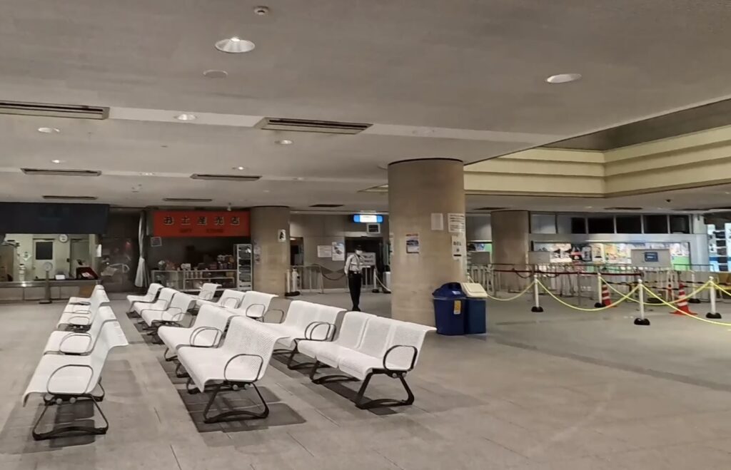 入ってきた時とはシャッターやゲートの開き具合が違います。ついていくと乗船ゲートの前に来る事ができました。