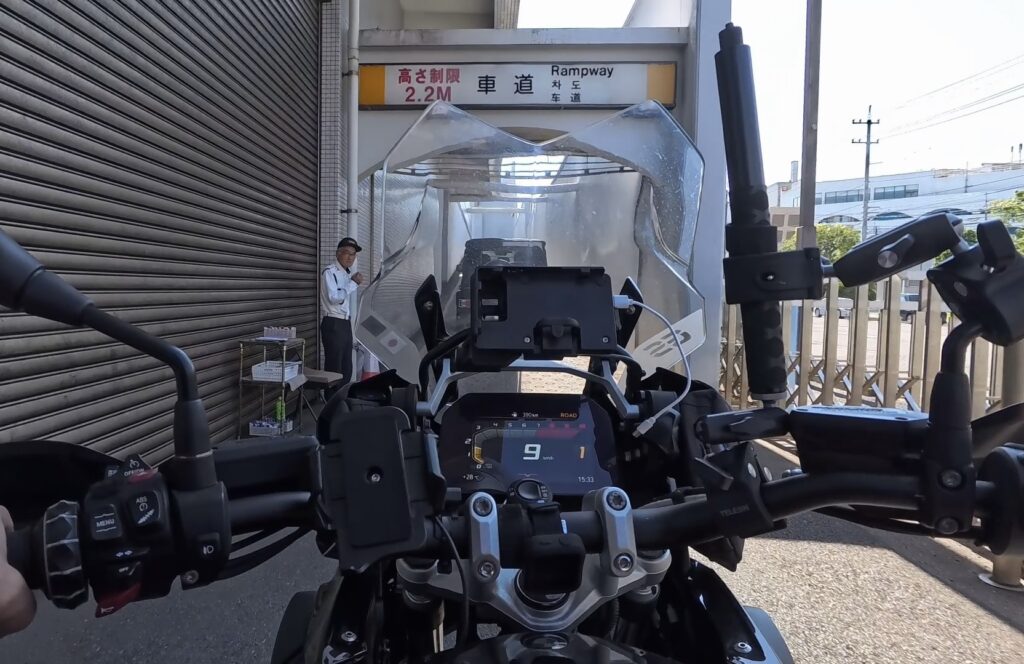 ここで 荷物検査を受け そのまま 軽自動車に先導されて建物内を移動します。