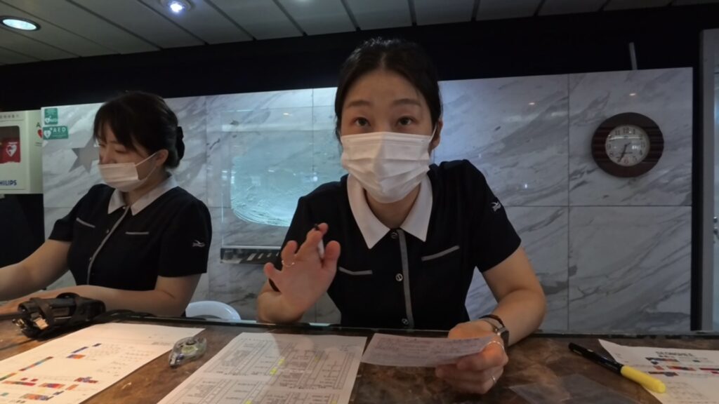 韓国人の方と一緒のエレベーターでロビー階に上がります。少しやりとりをして 彼にボタンを押してもらいました。