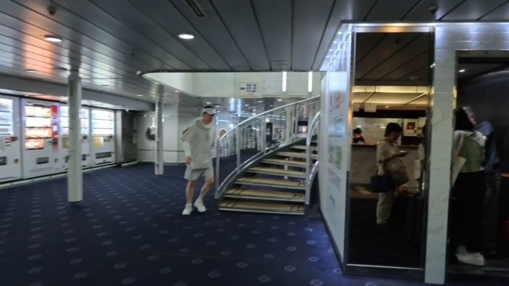 彼の後に続いて乗船手続きをして 鍵をもらい 客室のある2階に移動は階段です。