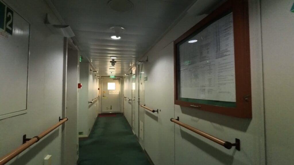 船の通路は手すりがずっと付いているので あらためて「これは船だ」と感じます。